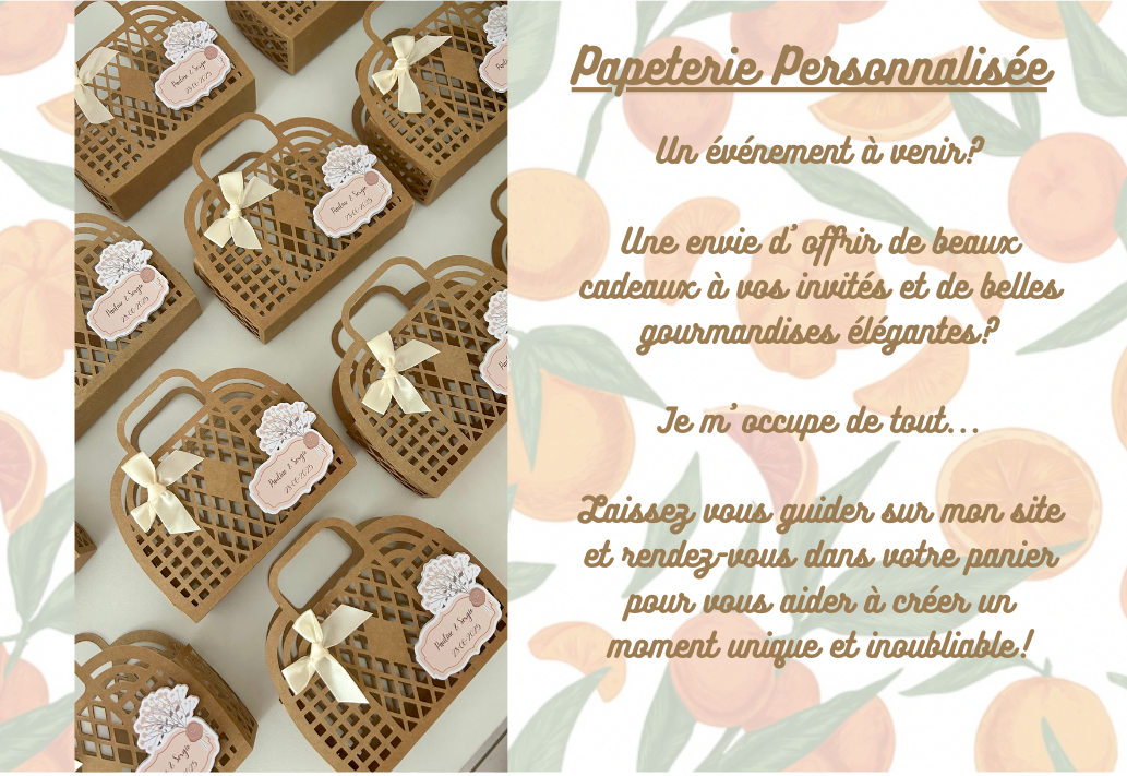 Dans cette collection tu pourras retrouver tout le nécessaire pour choyer tes invités et qu'ils repartent avec un cadeau inoubliable de ta journée d'exception !
